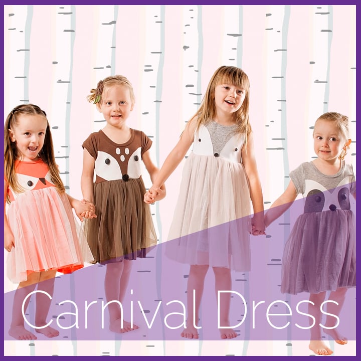 The Carnival Knit Dress is a perfect little knit dress with twirly skirt overlay and optional animal faces. So fun and playful for any girl.