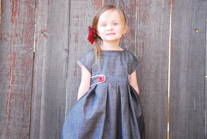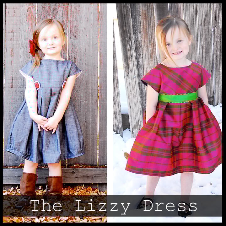 The Lizzy Dress Pattern has clean lines, dolman sleeves, boat neck and a cross over back. It sews up quickly with out the use of any zippers or button holes. The back is a simple button and loop closure.