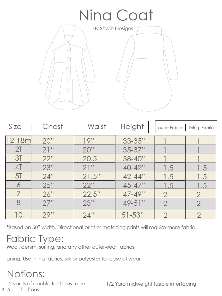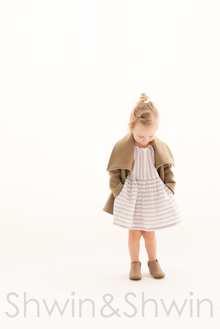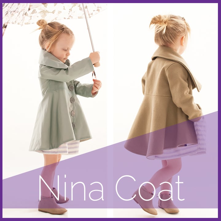 The Nina Coat Pattern has a hi low flared skirt that adds style and a girly flare, front button and oversized collar top this off to be a stylish and adorable coat. Make it from heavy outerwear fabric for a dressy winter coat or from light weight fabrics for the perfect spring coat. You can even make it from waterproof fabric for a stunning rain coat.