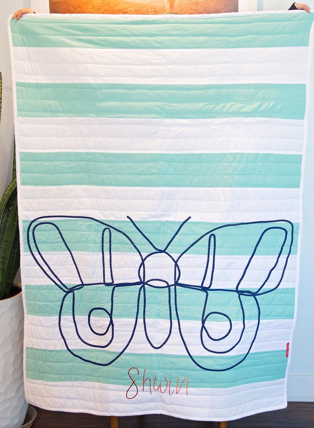 Instructions for making the striped quilt base, and Butterfly line art are included.