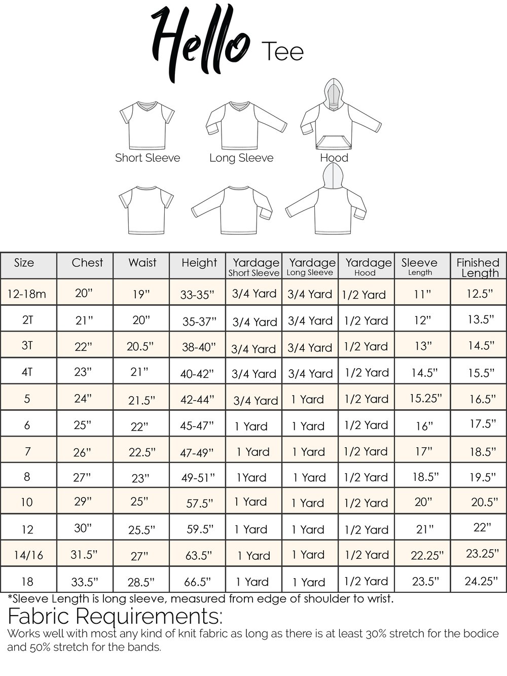 The pattern includes size 12m-18 (see photo for size info)