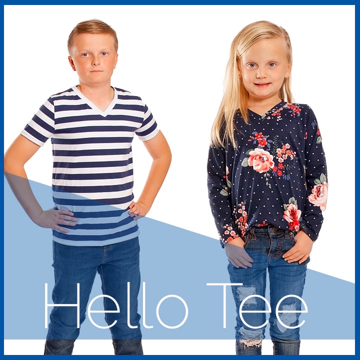 The Hello Tee is a v-neck tee with long or short sleeve options and hood and pocket options as well. It can be made in so many different styles it's the perfect staple to have on hand.