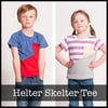 Perfect for boys and girls the Helter Skelter tee has angled color blocking that run across the front and back in different directions so they connect smoothly at the sides.