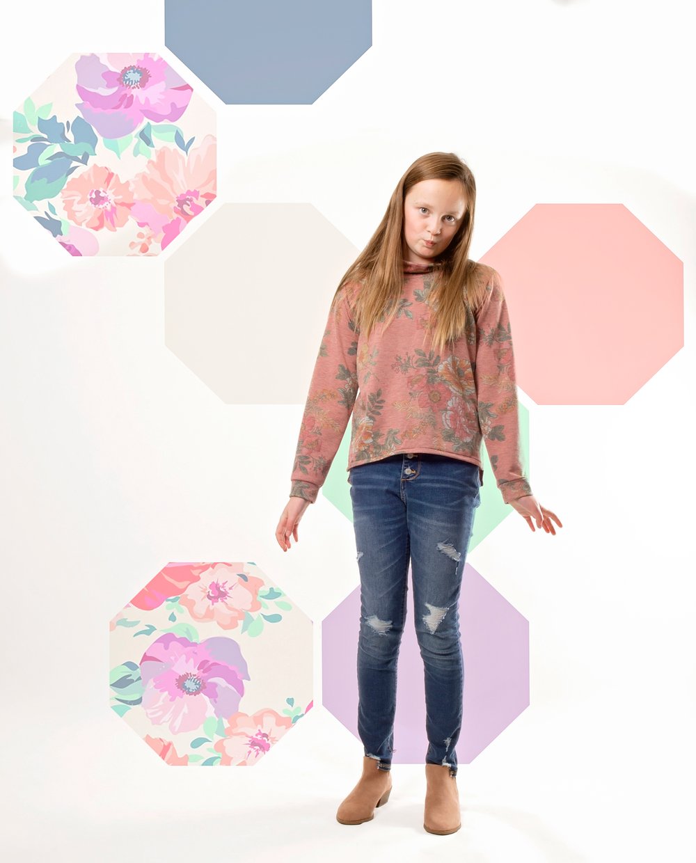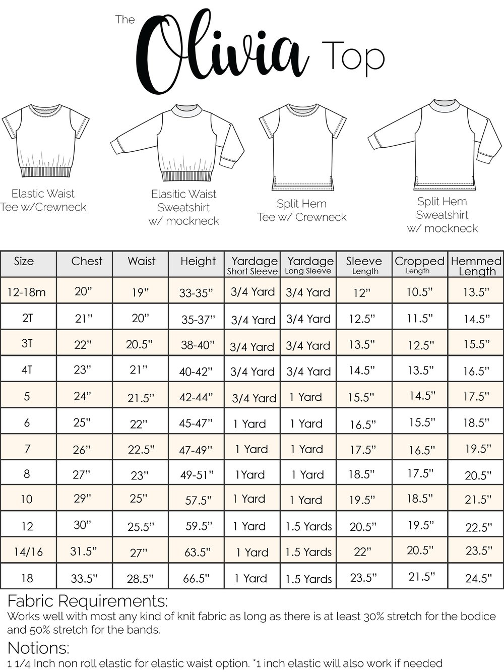 The Olivia Top is a wardrobe staple. With style lines and features for fresh new styles. The Olivia Top has a cropped elastic waist option, as well as a hi low split hem option. You can also choose from a mock neck turtleneck or a crewneck. Long and short sleeve options make this the perfect wardrobe item year round.